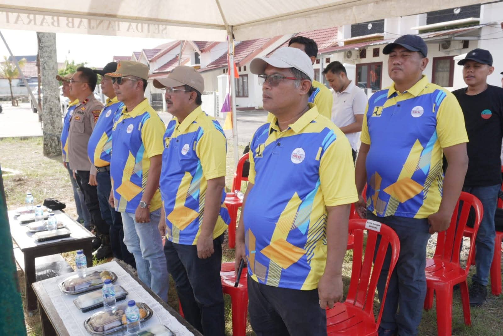 Didampingi Kepala Dinas PUPR Tanjab Barat, Apri Dasman, S.T, M.T, Bupati Tanjung Jabung Barat, Drs. H. Anwar Sadat, M.Ag., secara resmi membuka Turnamen Bola Voli Putra DPUPR Cup dalam rangka memperingati Hari Bhakti PUPR ke-80 Tahun 2025, Sabtu (22/11/25).