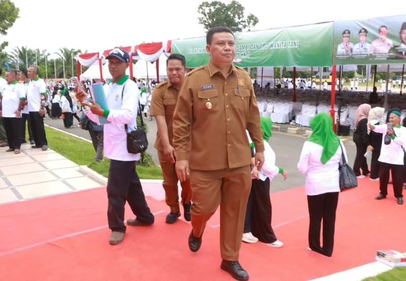 DEWARTA.COM – Wakil Bupati Tanjung Jabung Barat, Dr. H. Katamso, SA, S.E., M.E., menghadiri pelantikan Dewan Pimpinan Daerah (DPD) Himpunan Kerukunan Tani Indonesia (HKTI) dan DPD Wanita Tani Provinsi Jambi yang digelar di Bukit Cinto Kenang, Muaro Jambi, Selasa (21/04/26).